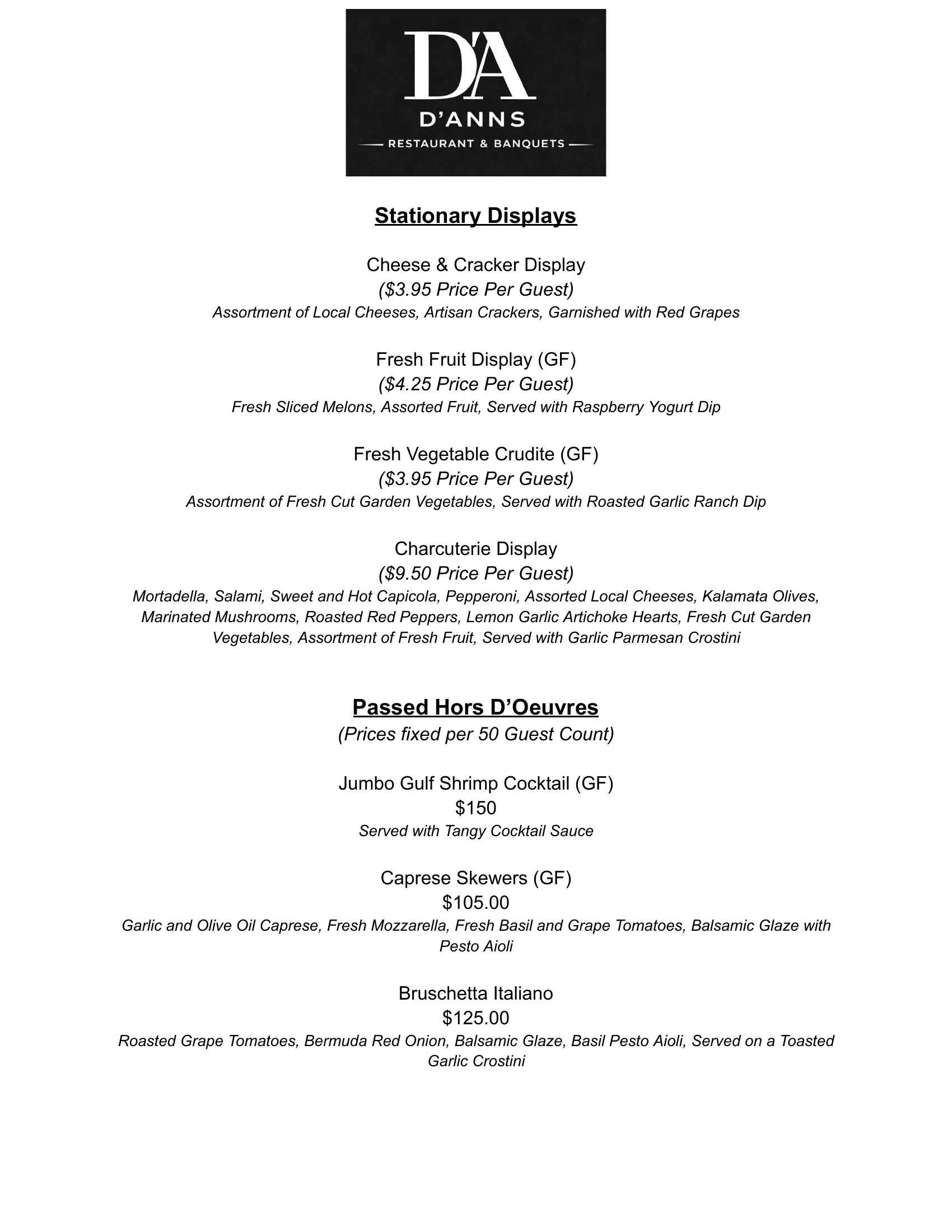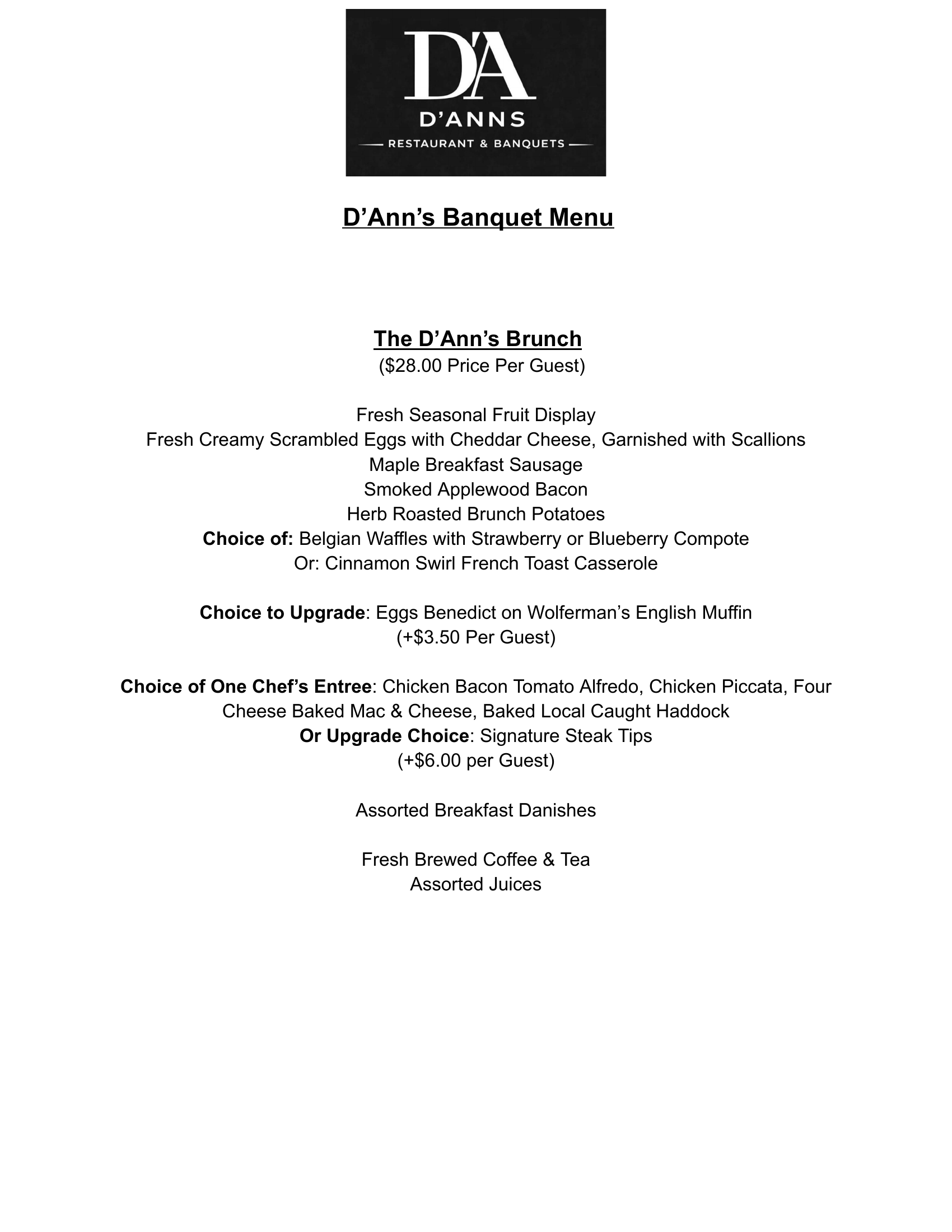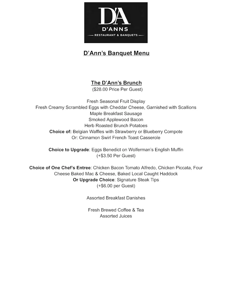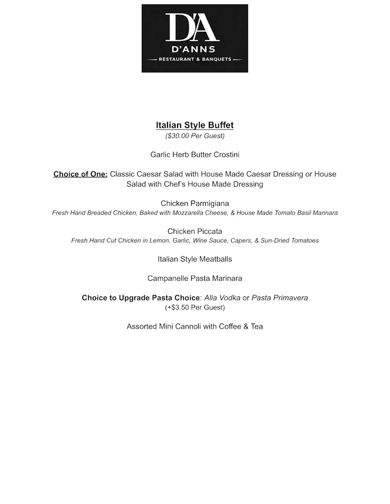 Host your next unforgettable private event with us at D'Ann's Restaurant and Banquets!