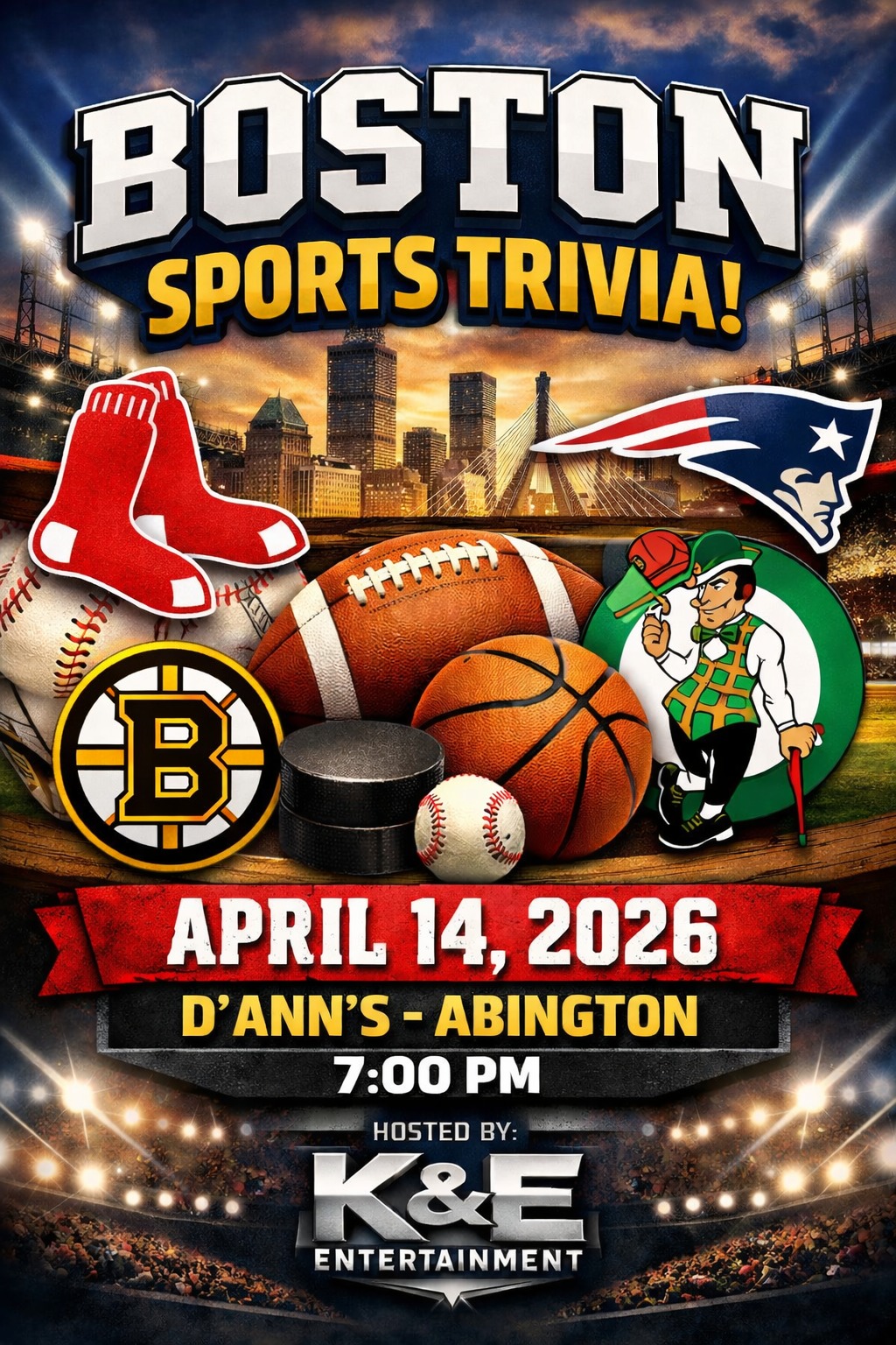 TUESDAY APRIL 14th - 7 PM- BOSTON SPORTS TRIVIA