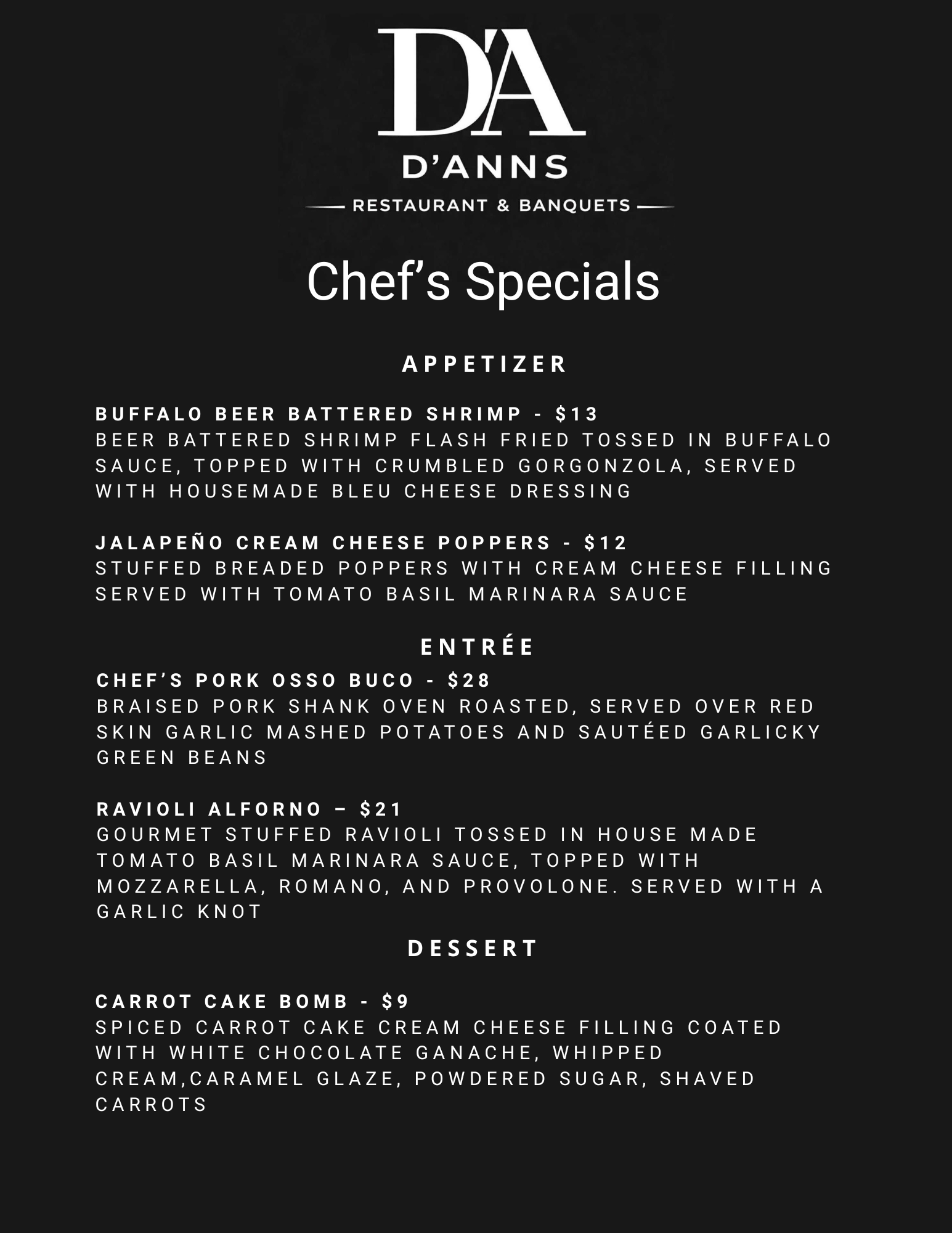 - Chef's Specials