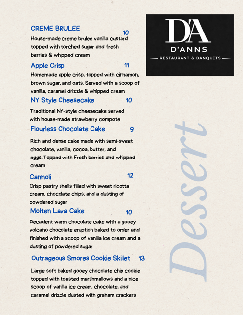 All of our pizzas are made with D’Ann’s hand-crafted pizza crust and sauce! Served Daily starting at 11 am